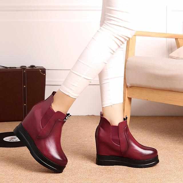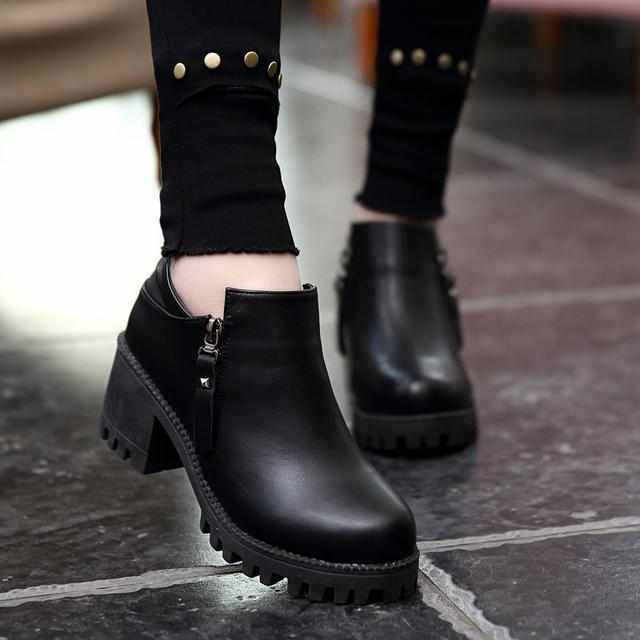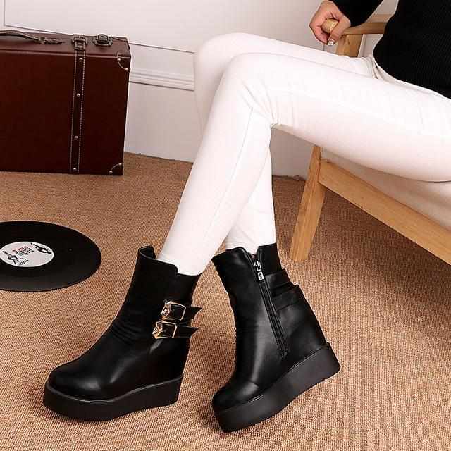 2017秋冬新款内增高松糕短靴,不论你是搭配裙装还是裤装都是非常漂亮的,短粗跟着地力更稳,减轻脚步疲劳,很有女人味,精致时尚气质百搭。